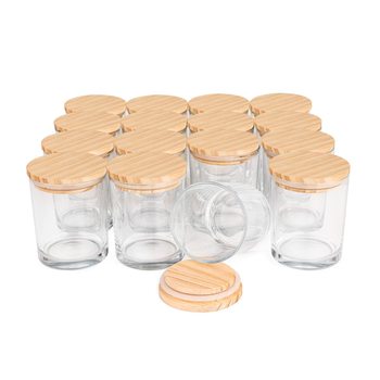 Круглая стеклянная баночка для свечей с деревянными крышками